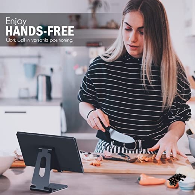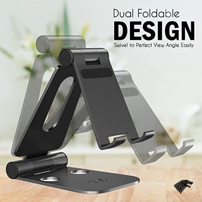 ELV Aluminum Adjustable Mobile Phone Foldable Holder Stand Dock Mount for All Smartphones, Tabs, Kindle, iPad (Black)
