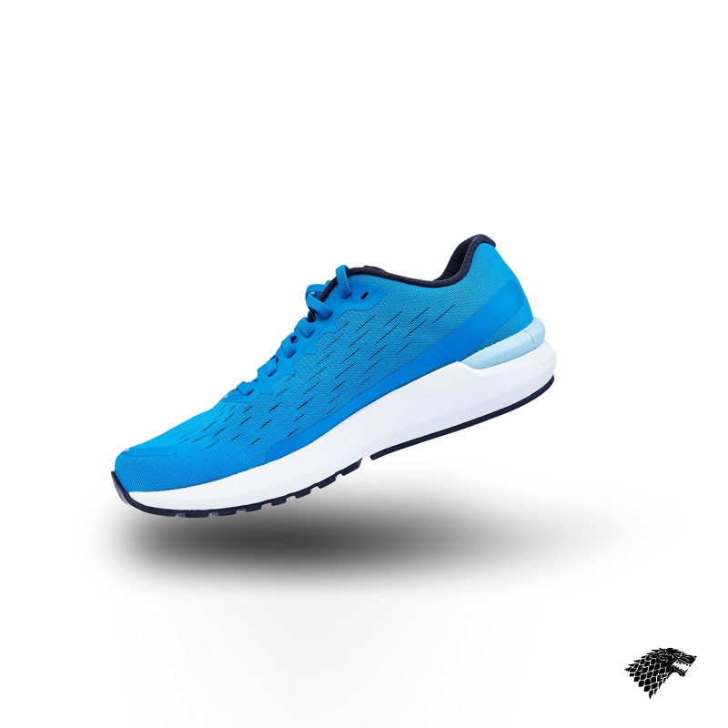 A pair of Blue walking shoes, has regular Styling, lace-ups detail Textile upper Cushioned footbed Textured and patterned outsole