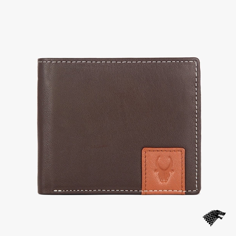 Brown solid two fold wallet 2 main compartments, has a non detachable flap 5 card holders, 2 slip pockets, has a flap coin pocket Warranty: 6 months Warranty provided by brand/manufacturer