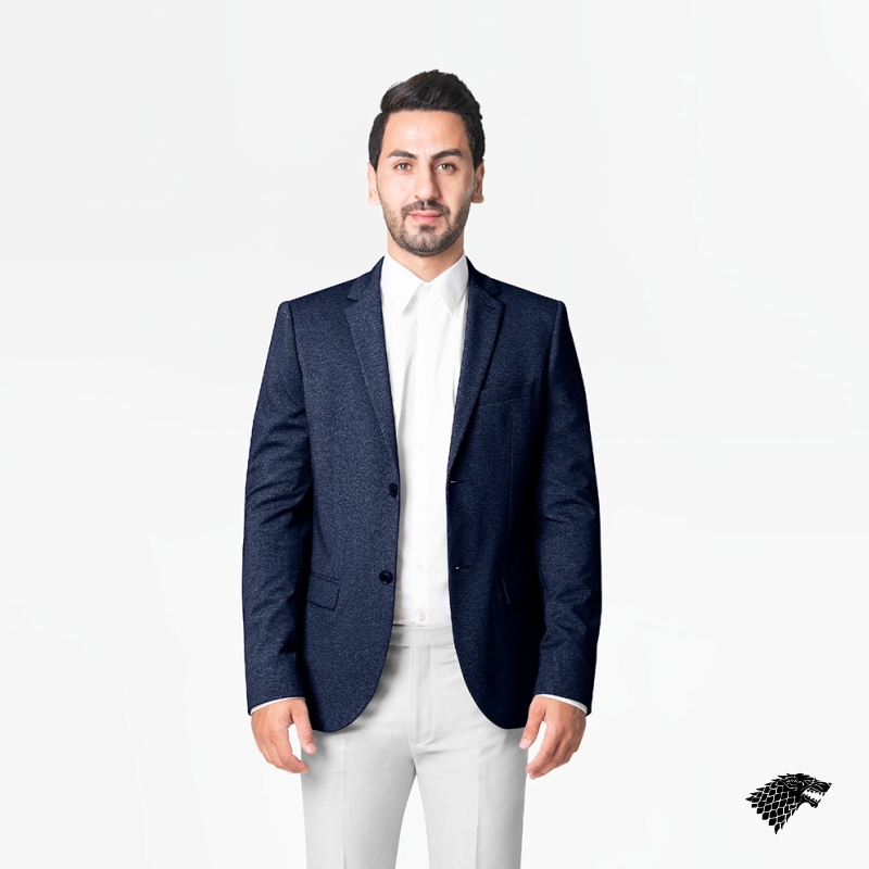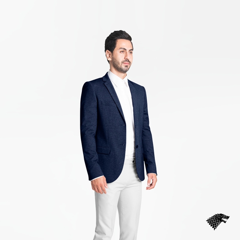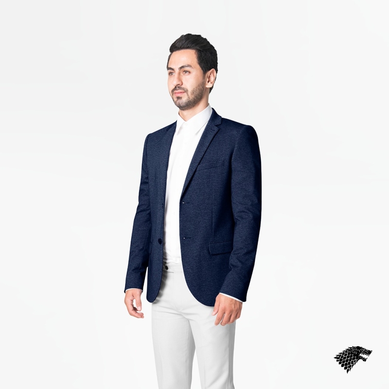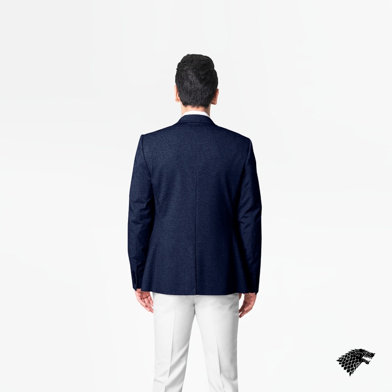 Navy Blue solid slim-fit formal blazer, has a notched lapel collar, long sleeves, two flap pockets, one chest pocket, single-breasted with a button closure and has double vented back at hem