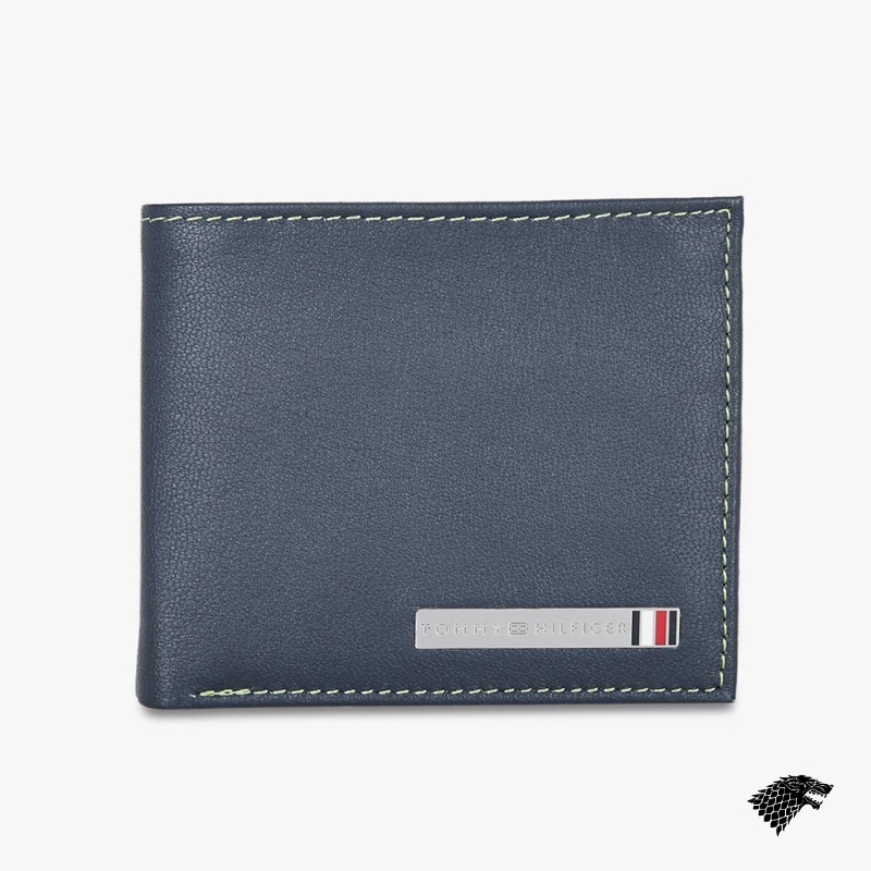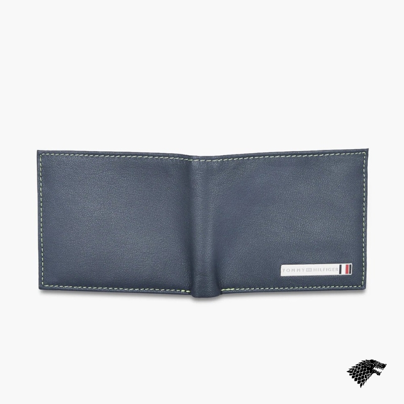 Navy Blue solid two fold wallet 2 main compartments 4 card holders, 2 slip pockets, has a flap coin pocket