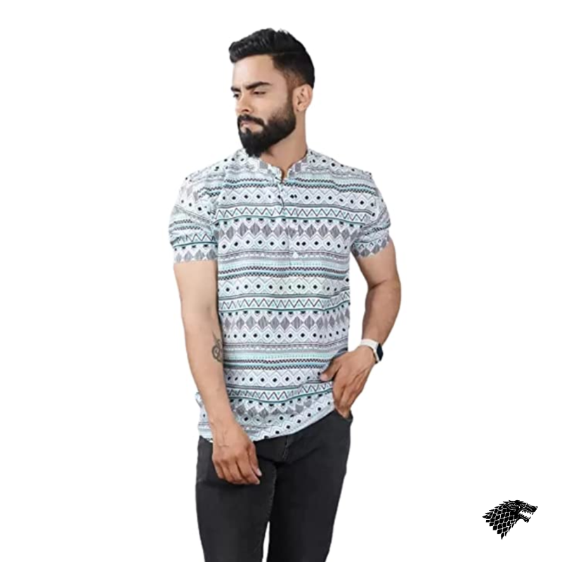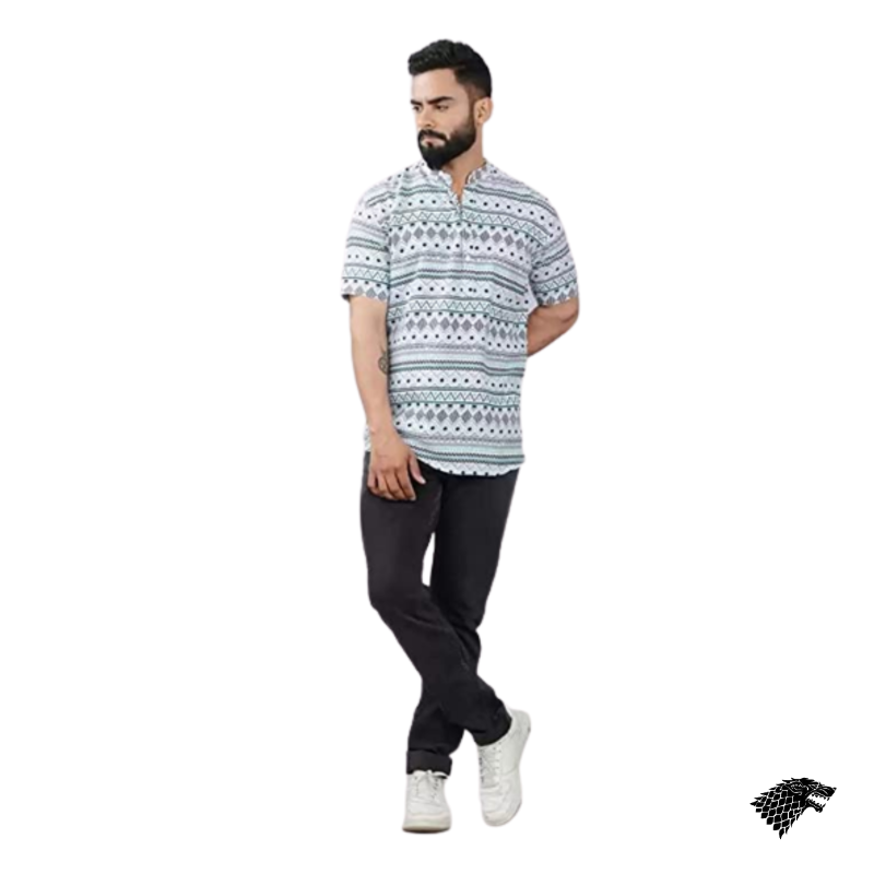 VIYAANSH Mens Animal Printed Cotton Blend Short Kurta