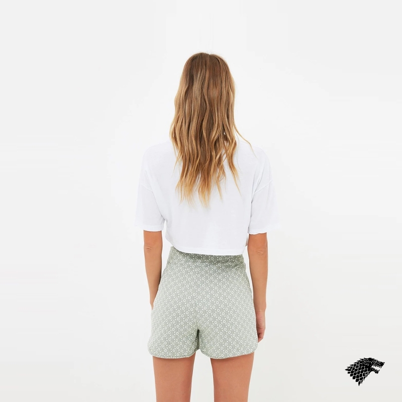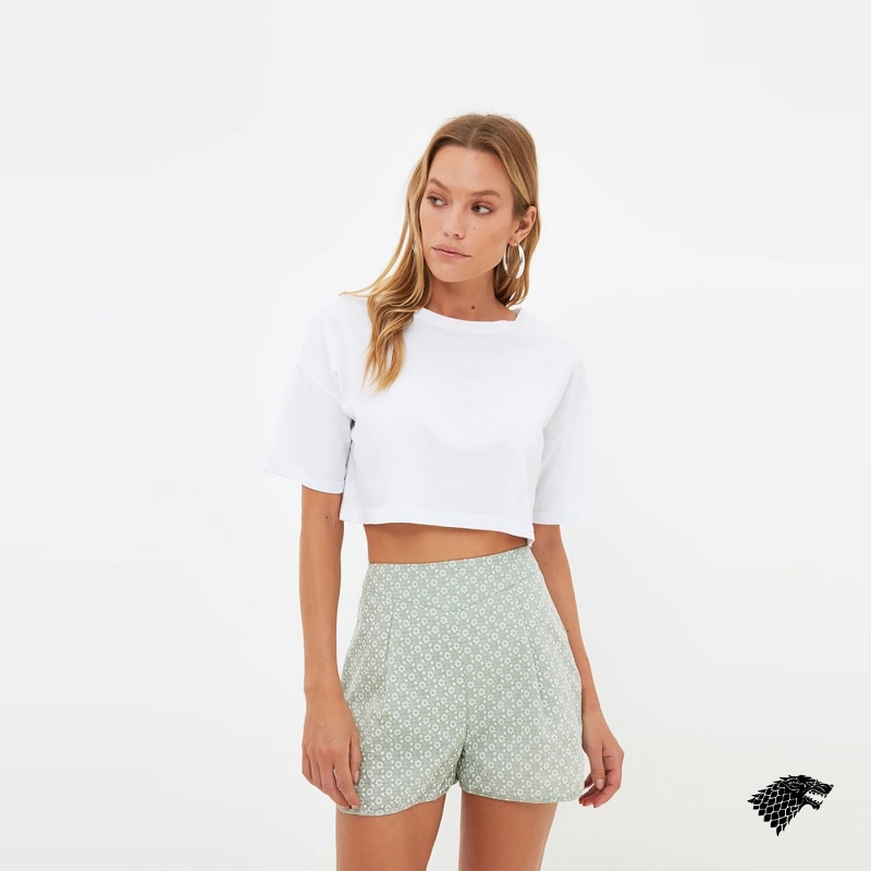 Green printed mid-rise regular shorts, has an elasticated waistband with drawstring closure.