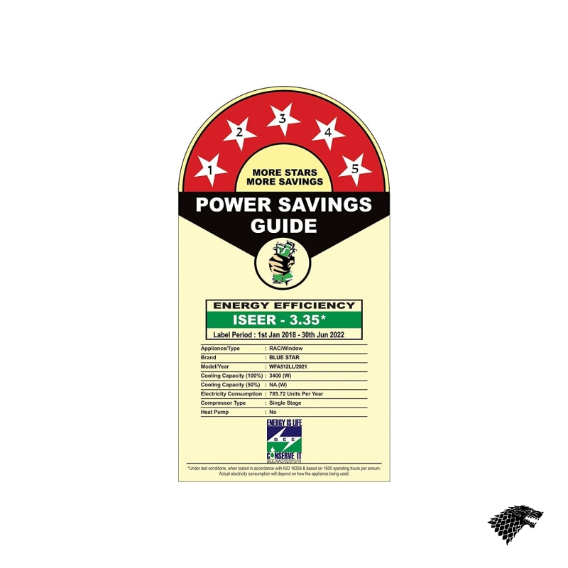 Energy Rating: 5 Star. Annual Energy Consumption: 785.72 units. ISEER Value: 3.35 | The star rating is as per BEE guidelines on or before 30th June 2022.