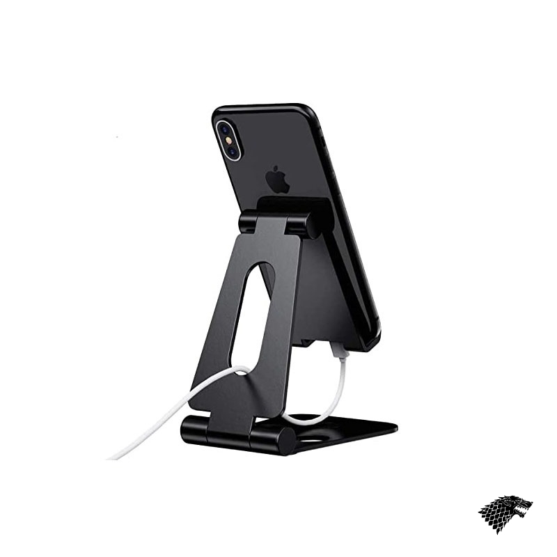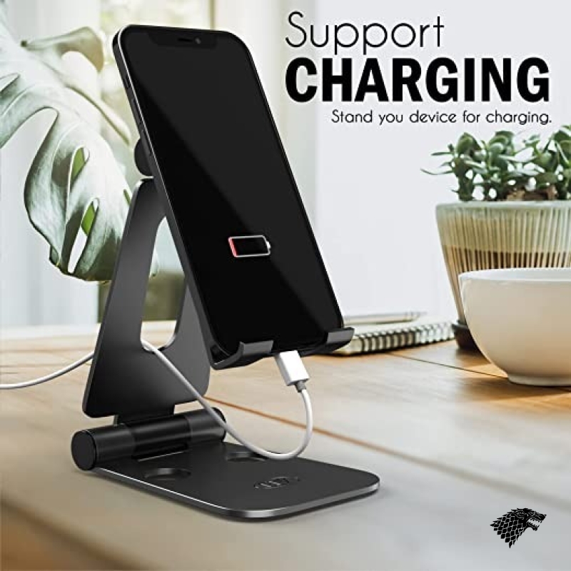 ELV Aluminum Adjustable Mobile Phone Foldable Holder Stand Dock Mount for All Smartphones, Tabs, Kindle, iPad (Black)