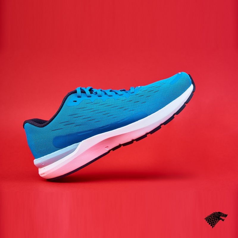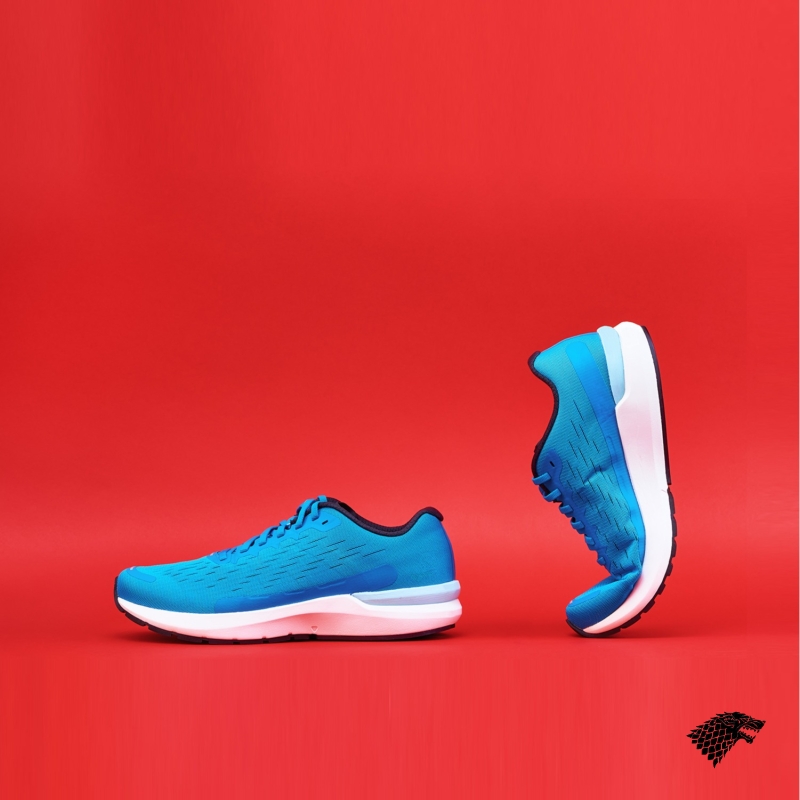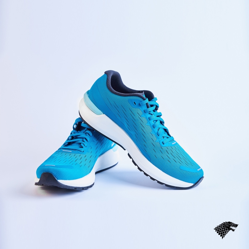 A pair of Blue walking shoes, has regular Styling, lace-ups detail Textile upper Cushioned footbed Textured and patterned outsole
