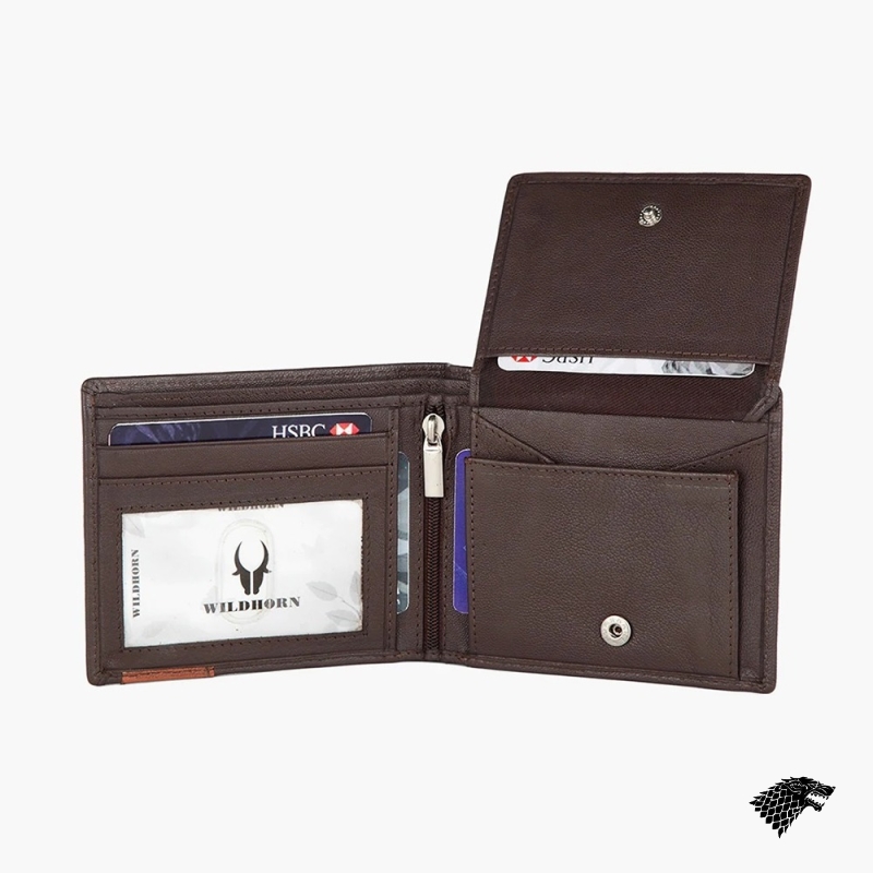 Brown solid two fold wallet 2 main compartments, has a non detachable flap 5 card holders, 2 slip pockets, has a flap coin pocket Warranty: 6 months Warranty provided by brand/manufacturer