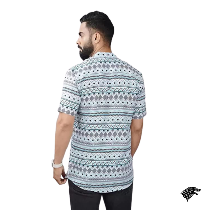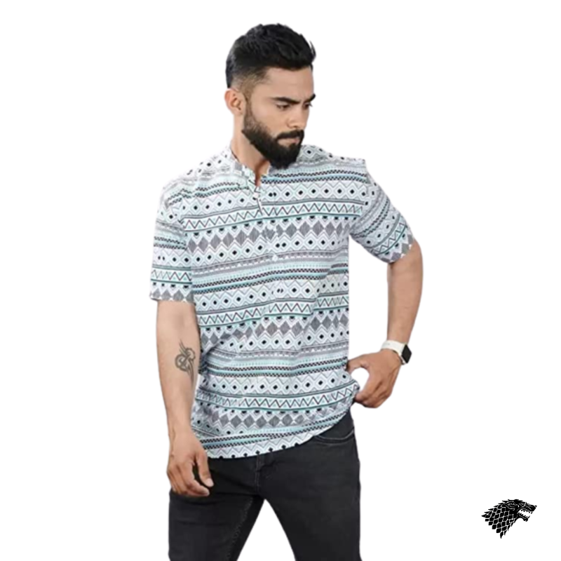 VIYAANSH Mens Animal Printed Cotton Blend Short Kurta