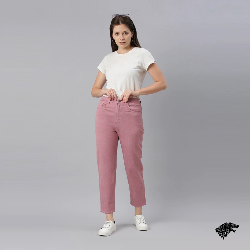 Women Pink Relaxed Fit High-Rise Stretchable Crop Jeans